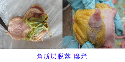 谷鳳柱教授還說,肌胃炎多和腺胃炎同時發(fā)生,但也可單獨發(fā)生,且對雞的危害大于腺胃炎。由于病因不同,臨床肌胃角質層的病理變化也不盡相同。臨床上經常看到肌胃角質層的糜爛、崩解一定是發(fā)生了肌胃炎,但角質層沒有糜爛不一定不是肌胃炎,要認真辯證分析。如果發(fā)現(xiàn)角質層已經發(fā)生褪色、變淡,那么我們就應該注意了。
