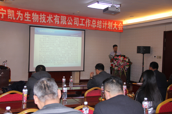 2017年1月6日下午,寒冷冬日,暖陽高照,美麗的渤海之濱錦州,遼寧凱為生物技術(shù)有限公司2016年工作總結(jié)和2017年工作計(jì)劃大會(huì)在華信大廈會(huì)議廳隆重舉行,遼寧凱為自2005年創(chuàng)建以來,歷時(shí)11年的發(fā)展歷程,我們積累了經(jīng)驗(yàn),也展示了多年的成果,展望2017年未來的發(fā)展重點(diǎn)和方向,現(xiàn)在,凱為人踏著夢(mèng)想而來,滿載而歸。未來,凱為人堅(jiān)定地為公司添磚加瓦、壘筑高臺(tái),讓夢(mèng)想更加豐滿,讓基業(yè)更加長(zhǎng)青。整個(gè)會(huì)議歷時(shí)三個(gè)小時(shí),包括總經(jīng)理王鐵良先生作年度工作總結(jié)、計(jì)劃報(bào)告,銷售部總經(jīng)理趙福寬先生作銷售部年度工作總結(jié)、計(jì)劃報(bào)告,優(yōu)秀員工表彰等環(huán)節(jié)。會(huì)議進(jìn)行中,掌聲數(shù)次響起,整個(gè)會(huì)場(chǎng)始終洋溢著振奮、進(jìn)取、熱烈的氣氛,精彩紛呈,亮點(diǎn)鮮明。