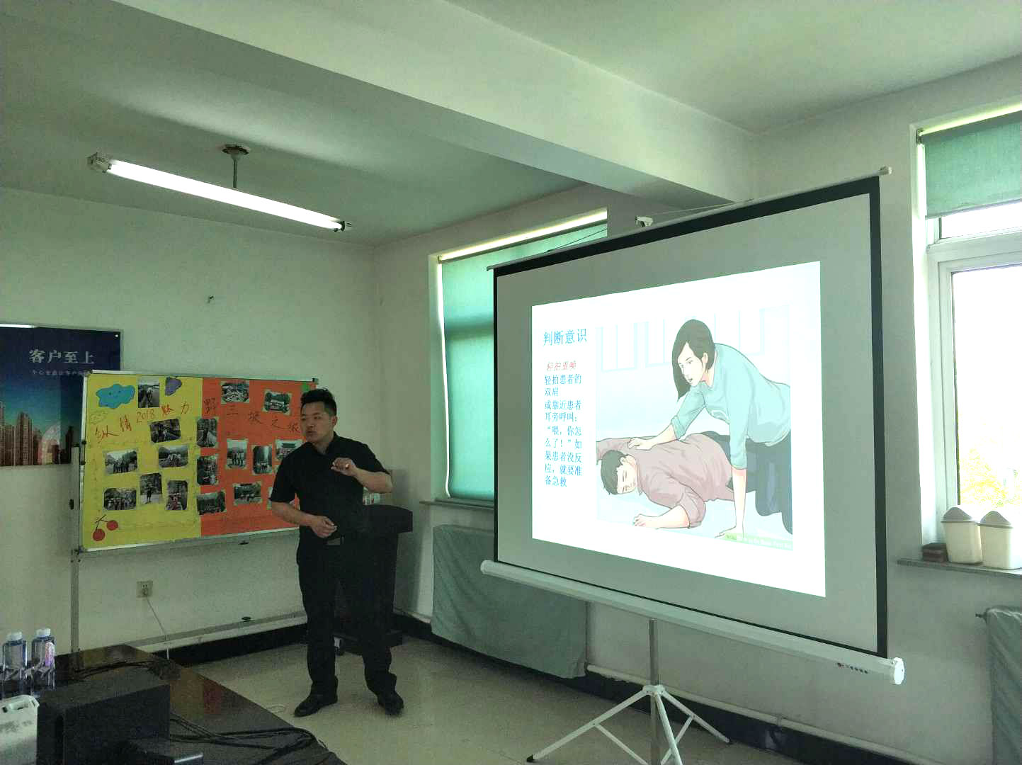 在全體工積極參與下培訓(xùn)活動圓滿完成,通過培訓(xùn)學(xué)習(xí)了解了CPR現(xiàn)場緊急救護(hù)知識(如人工呼吸、中署急救、創(chuàng)傷、出血、機(jī)械損傷、粉塵、觸電等自救);