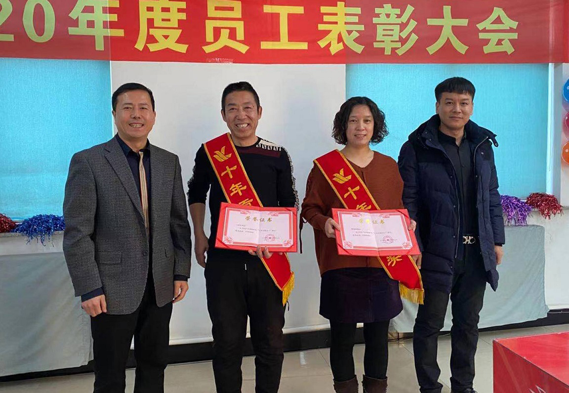 閆希東、薛曉娟獲得2020年度十年貢獻獎,十年的堅守不渝,十年的默默耕作,他們把最美好的青春韶華賦予了我們?yōu)橹餐瑠^斗的事業(yè),十年如一日他們時刻心系企業(yè)的憂患,與企業(yè)同風(fēng)雨共命運,正是因為他們的付出凱為的今天才如此絢麗。公司總經(jīng)理王鐵良與銷售部經(jīng)理趙福寬為獲獎?wù)哳C發(fā)榮譽證書。